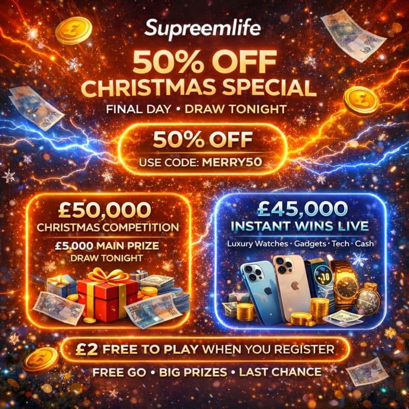Entry£1.99Max699SOLD: 21%144/699Sold: 144/699Remaining: 555Cash Alternative: £250AUTODRAWDaysHrsMinsSecs -
