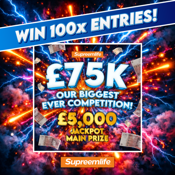 This is your chance to grab 100 entries in one go for the £75K Competition, featuring a £5,000 jackpot main prize plus huge excitement all the way through.