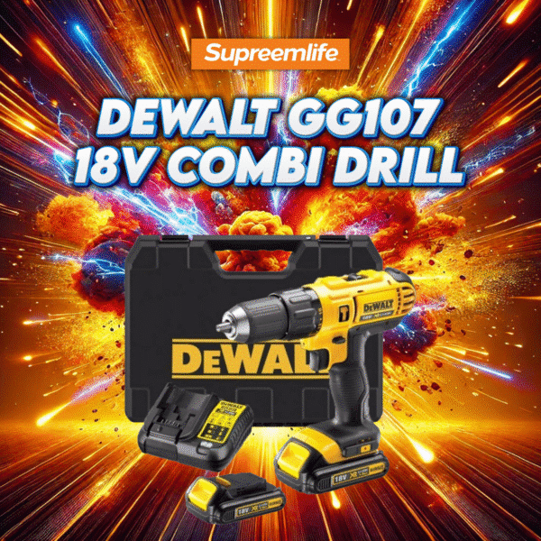 Power through any project with the Dewalt GG107 18V Combi Drill. Built for precision, strength, and durability, it’s perfect for both home DIY and professional use. Comes with batteries, charger, and case – everything you need to get the job done.