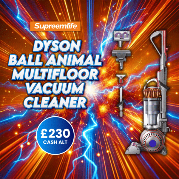 Keep your home spotless with the Dyson Ball Animal Multifloor Vacuum Cleaner. Engineered for powerful suction across carpets and hard floors, it’s ideal for pet owners and busy households. Compact, efficient, and built to last — or choose the £230 cash alternative!