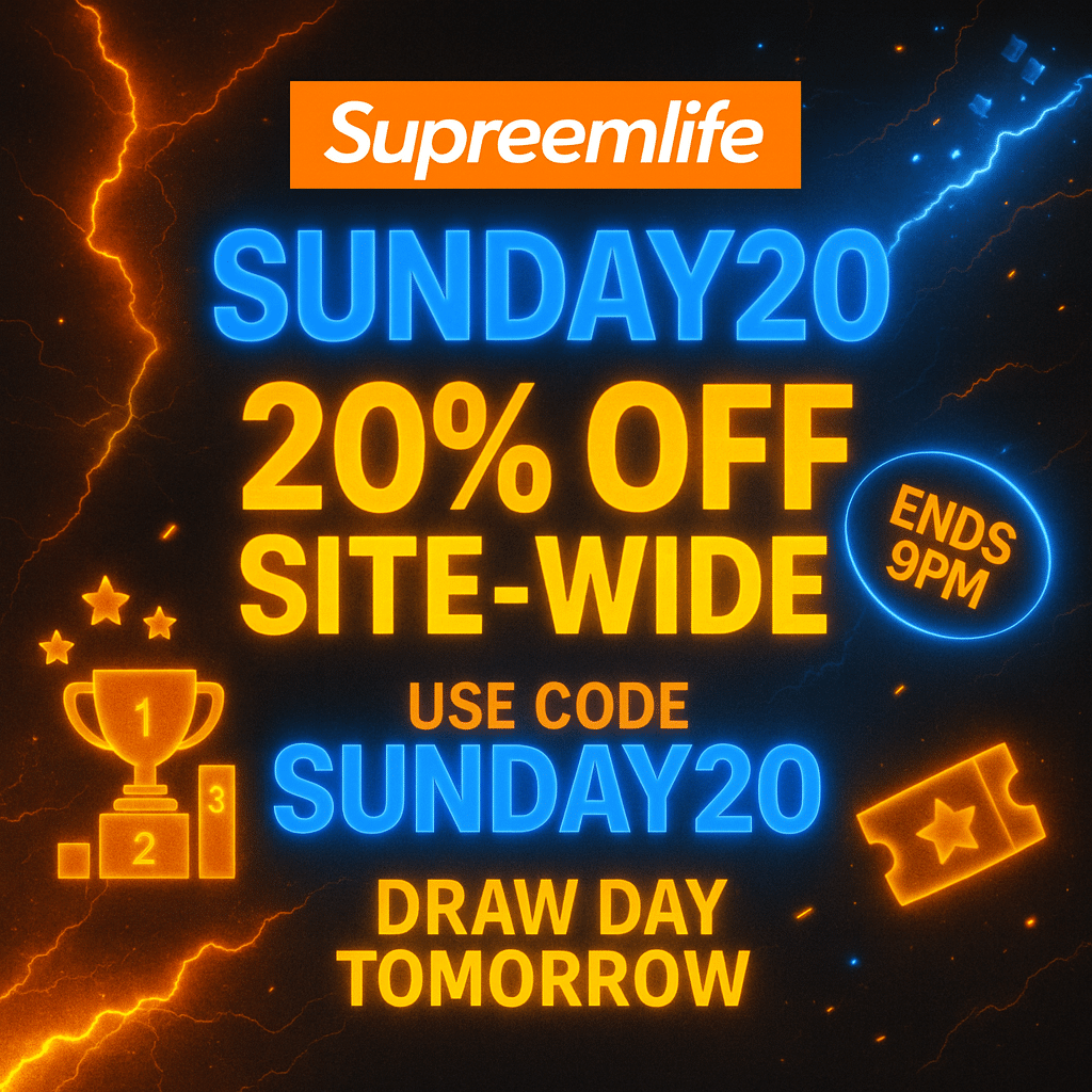 The live draw will take place on the Supreemlife Competitions Facebook page using random name picker to select the winning ticket number from all Entrants.